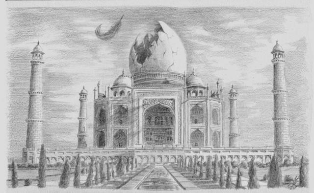 Composición libre del Taj Mahal con la técnica de Mina de Plata.